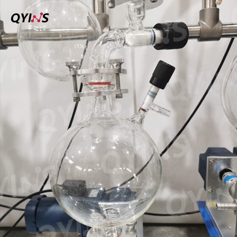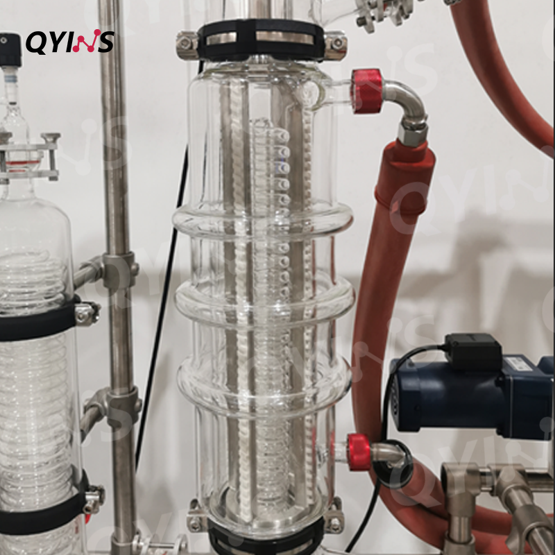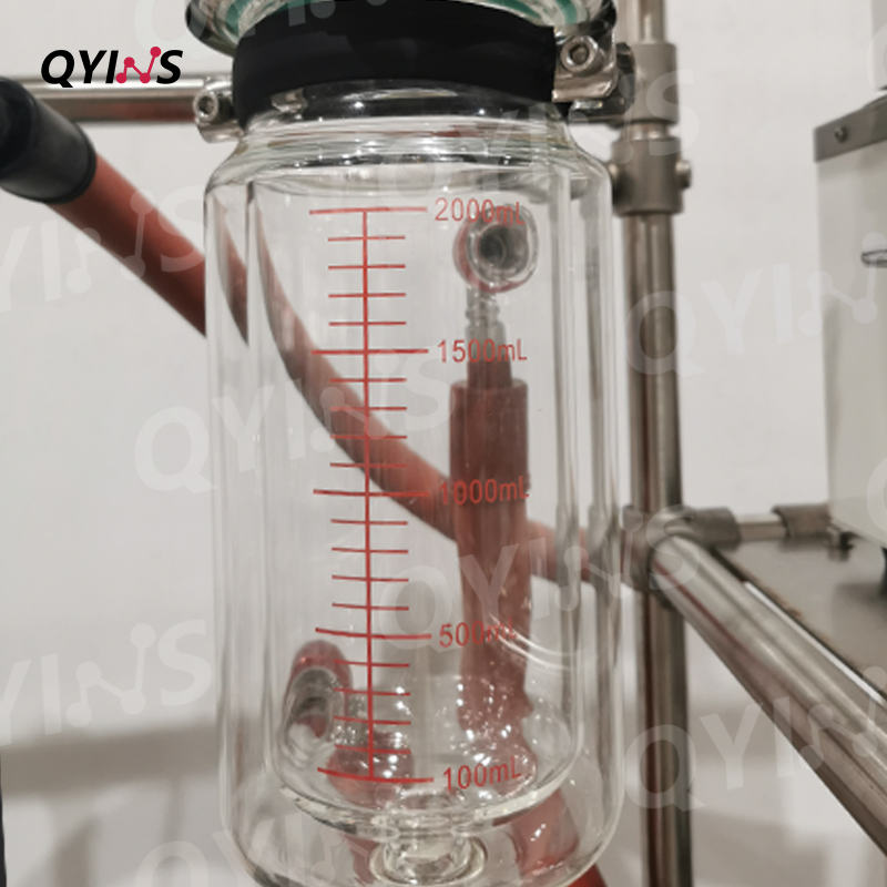 高透明度和高同心度,内置蛇形玻璃盘管冷凝器配套316不锈钢搅拌框,结合四氟刮条