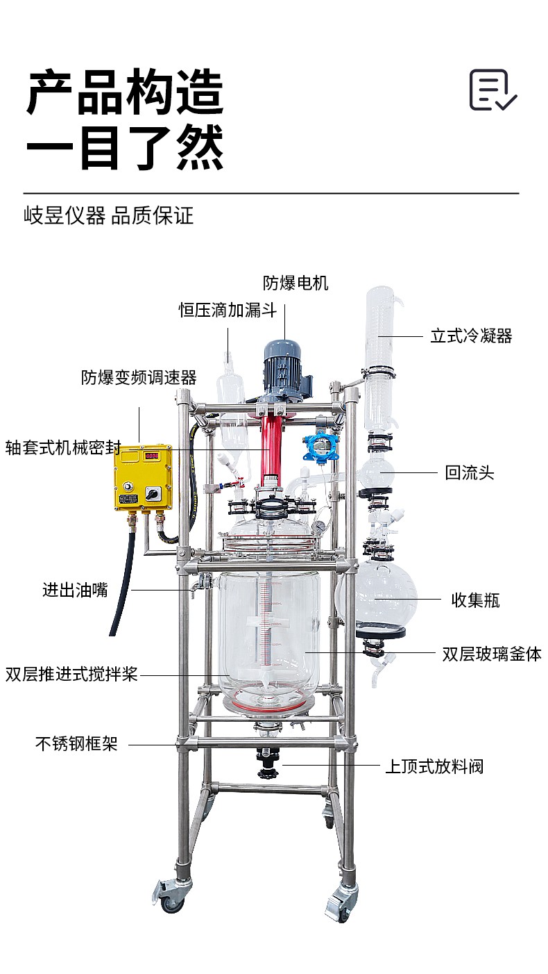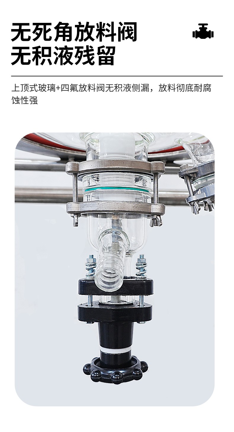 上顶式玻璃+四氟放料阀无积液侧漏,放料彻底耐腐