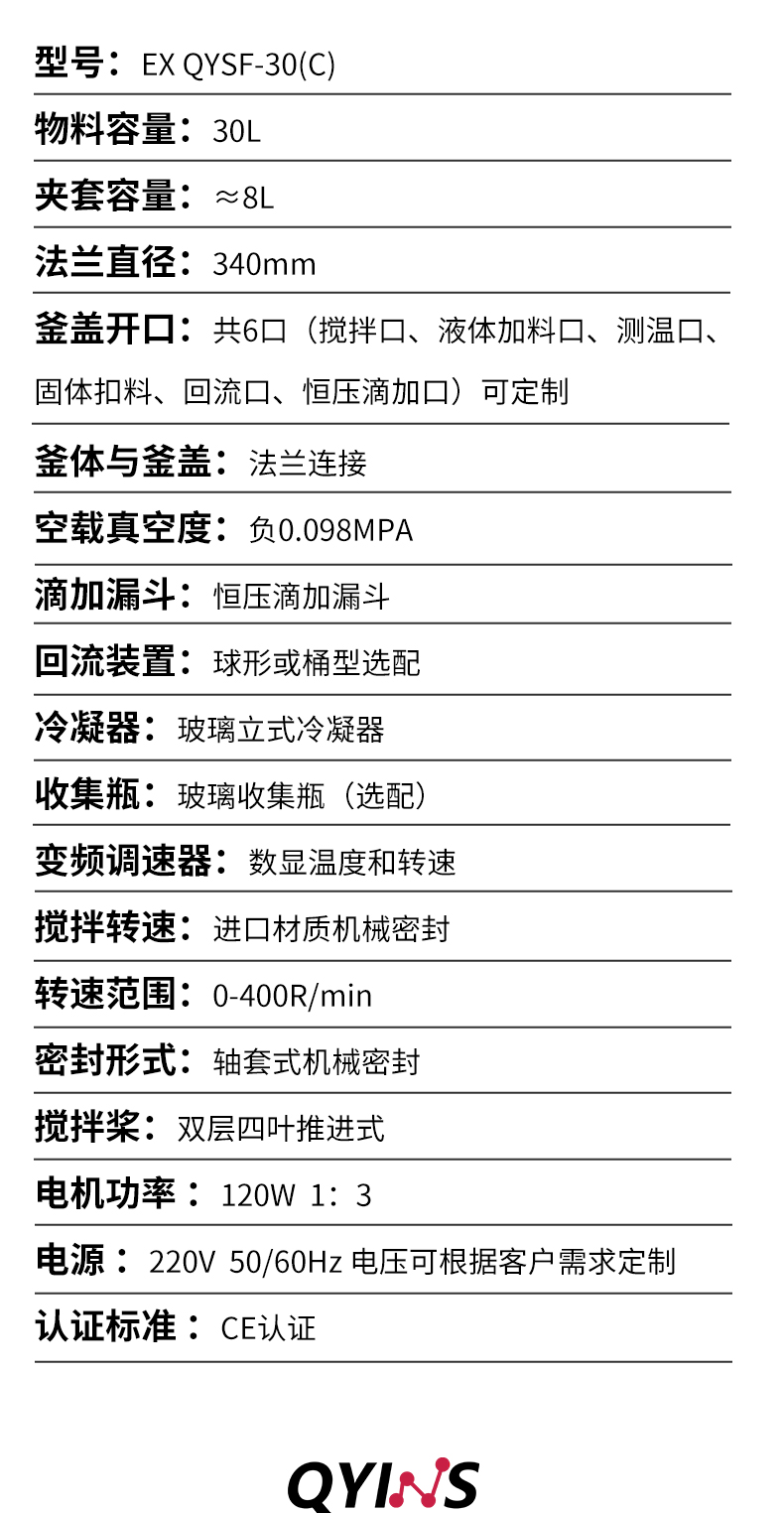 | 型号 MODEL | QYSF-30L | QYSF-50L | QYSF-80L | QYSF-100L | QYSF-150L | QYSF-200L |