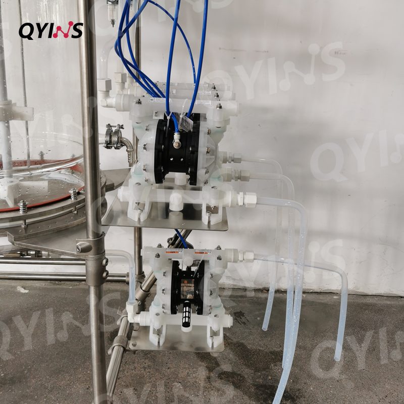 2、直通玻璃釜体上下法兰大口径设计,法兰直径495mm(市面常规固相釜直径340mm),加快过滤速率。