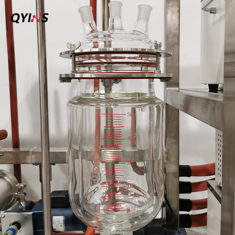 2.内置蛇形玻璃盘管冷凝器配套316不锈钢搅拌框,结合四氟刮条
