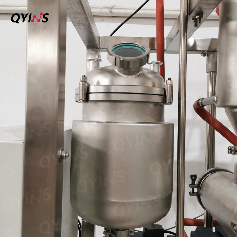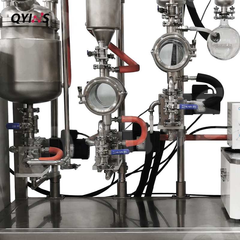 高同心度和高透明度,内置蛇形玻璃盘管冷凝器配套316不锈钢搅拌框,结合四氟刮条