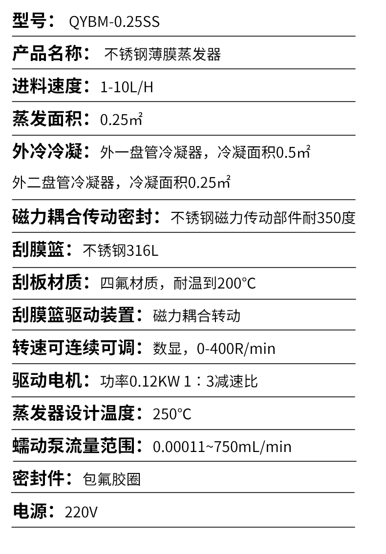 强制成膜高效传热实验室到中小试全面覆盖200D玻璃薄膜蒸发器