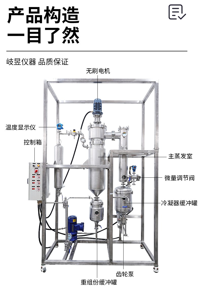 磁力传动系统使得整机密封得以实现,整套薄膜蒸发器系
