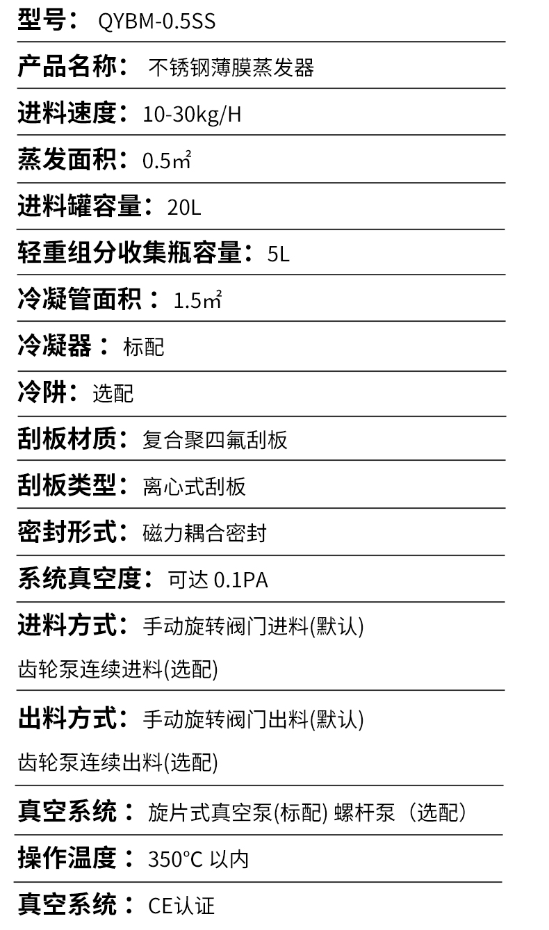0.5㎡不锈钢薄膜蒸发器
