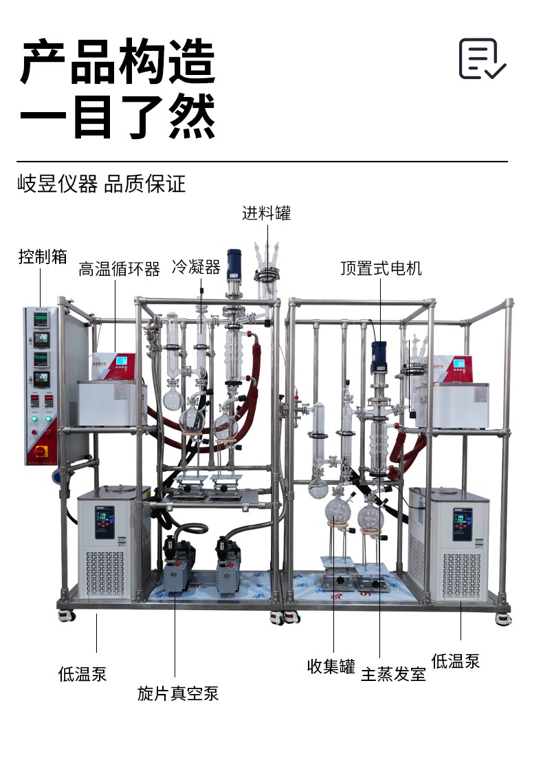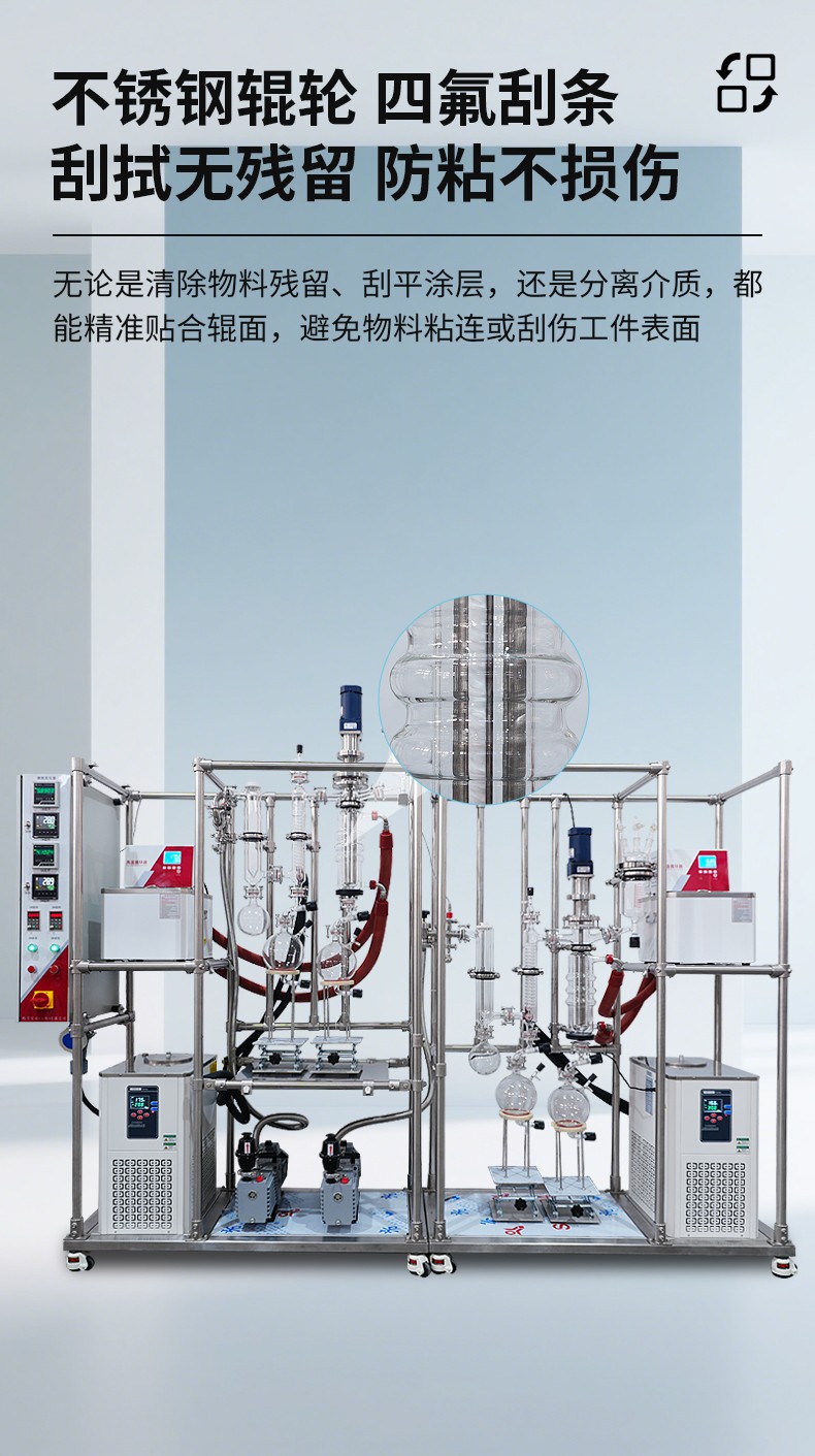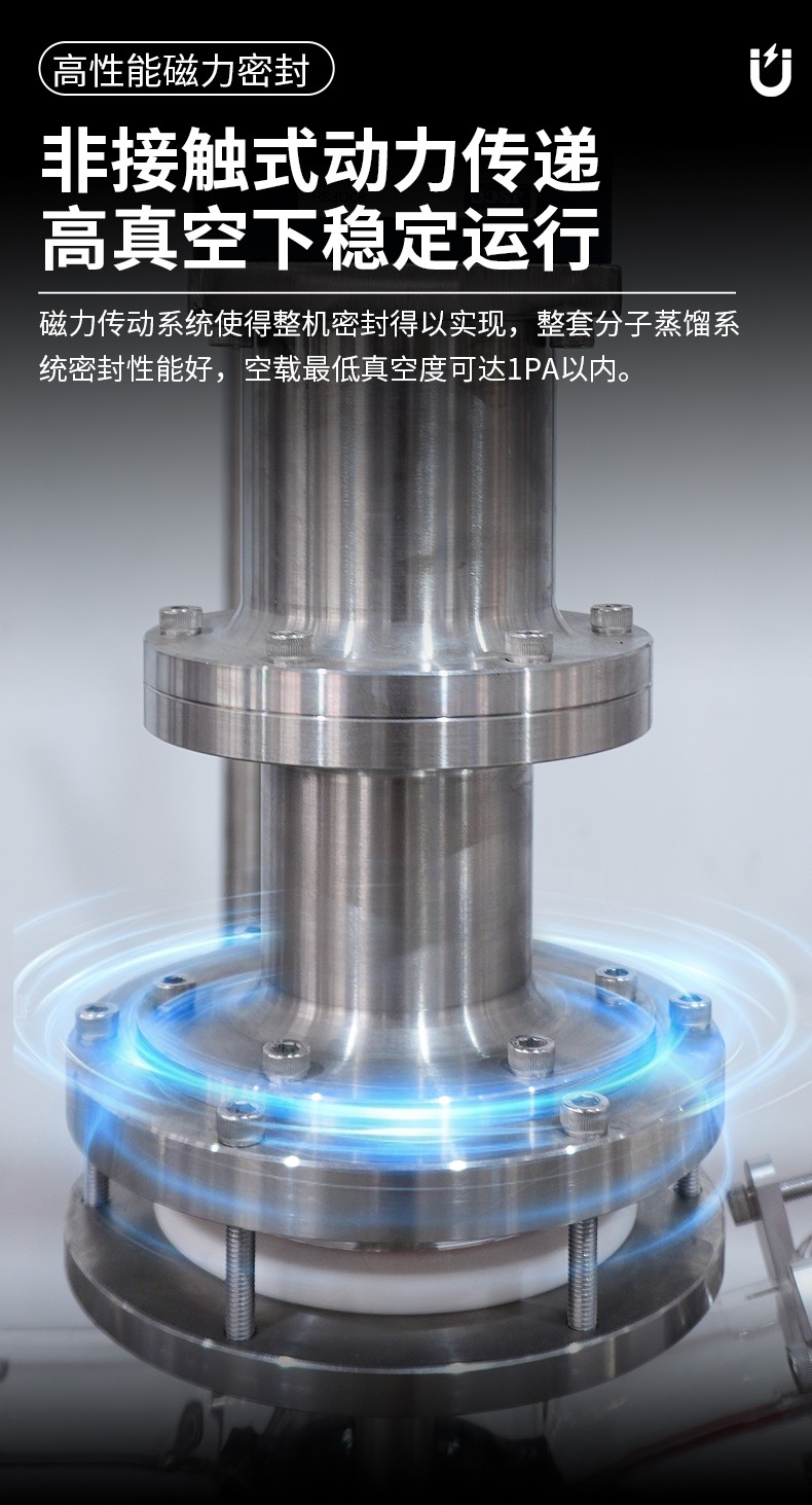 磁力传动系统使得整机密封得以实现,整套分子蒸馏系