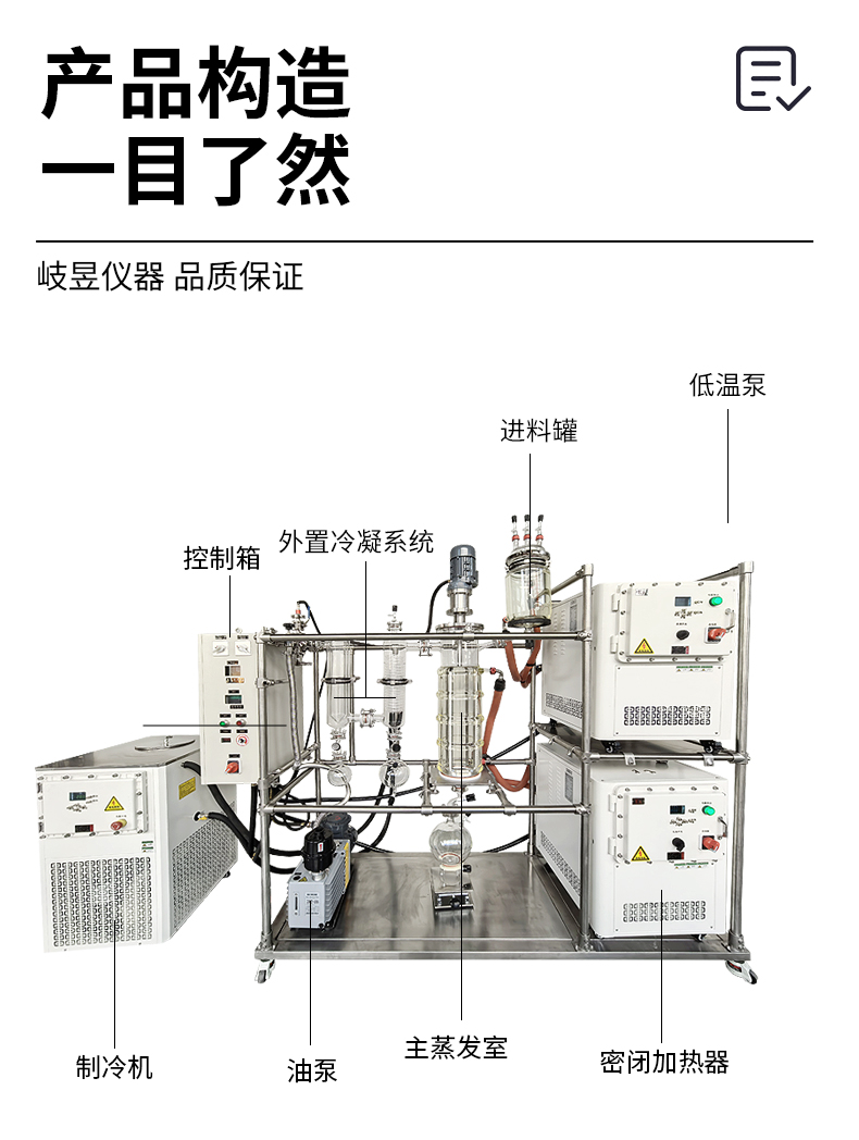 磁力传动系统使得整机密封得以实现,整套分子蒸馏系