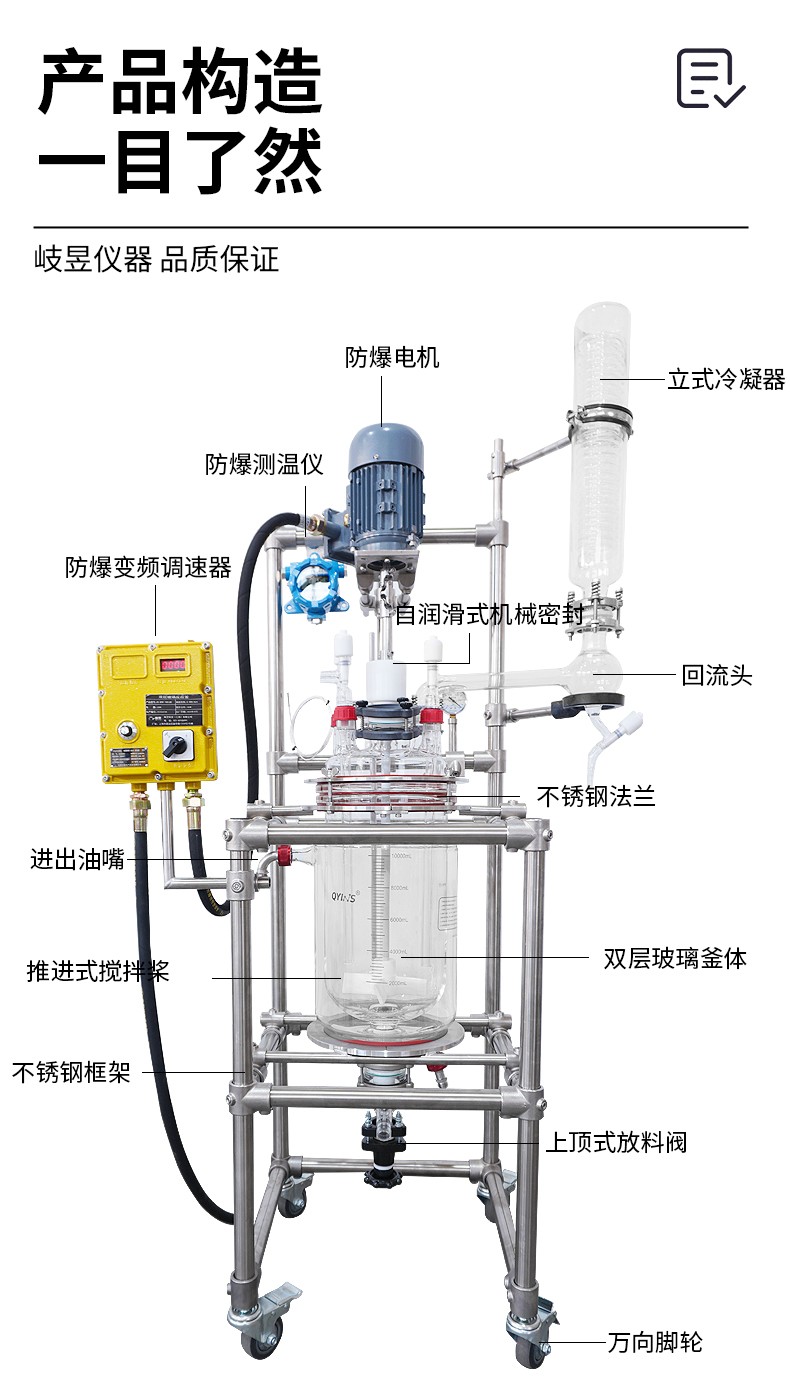 上顶式玻璃+四氟放料阀无积液侧漏,放料彻底耐腐