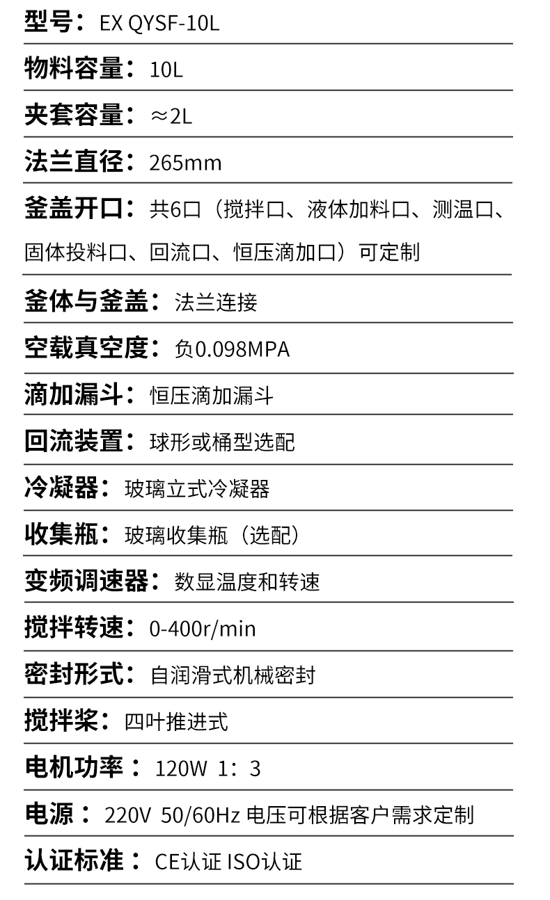 | 回流装置 | 球形或桶型选配 | |||||||