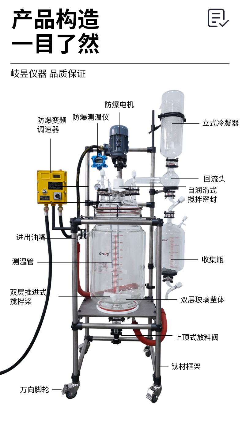 上顶式玻璃+四氟放料阀无积液侧漏,放料彻底耐腐