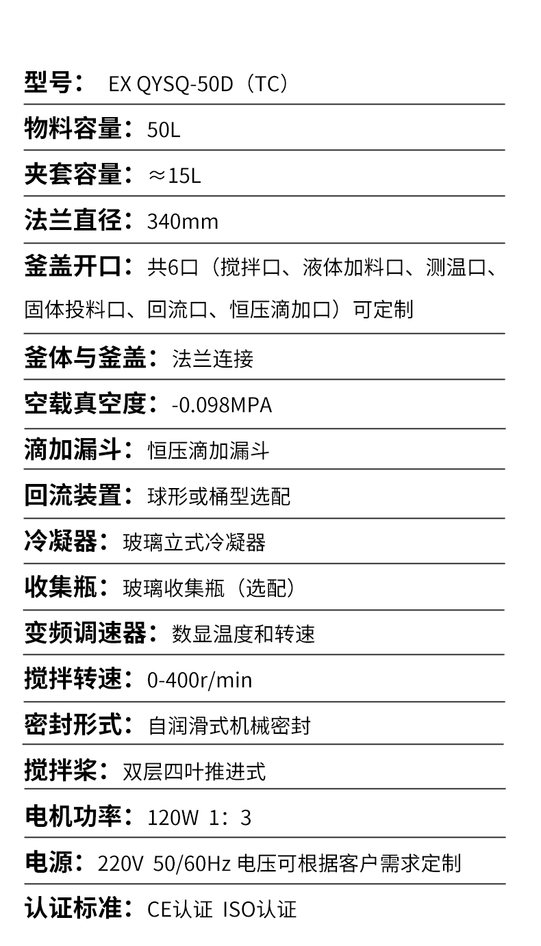 | 夹套容量(mL) | ≈8L | ≈15L | ≈16L | ≈20L | ≈35L | ≈40L |