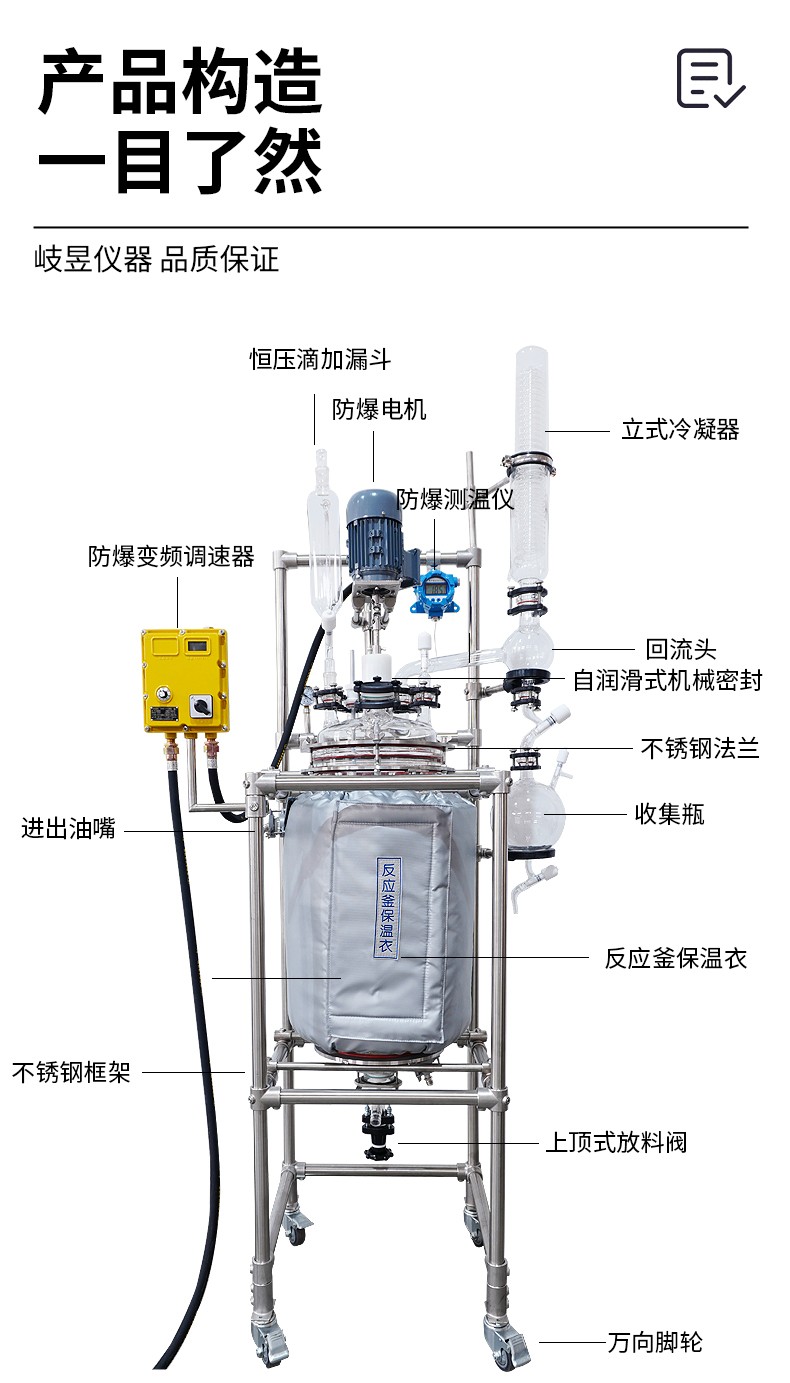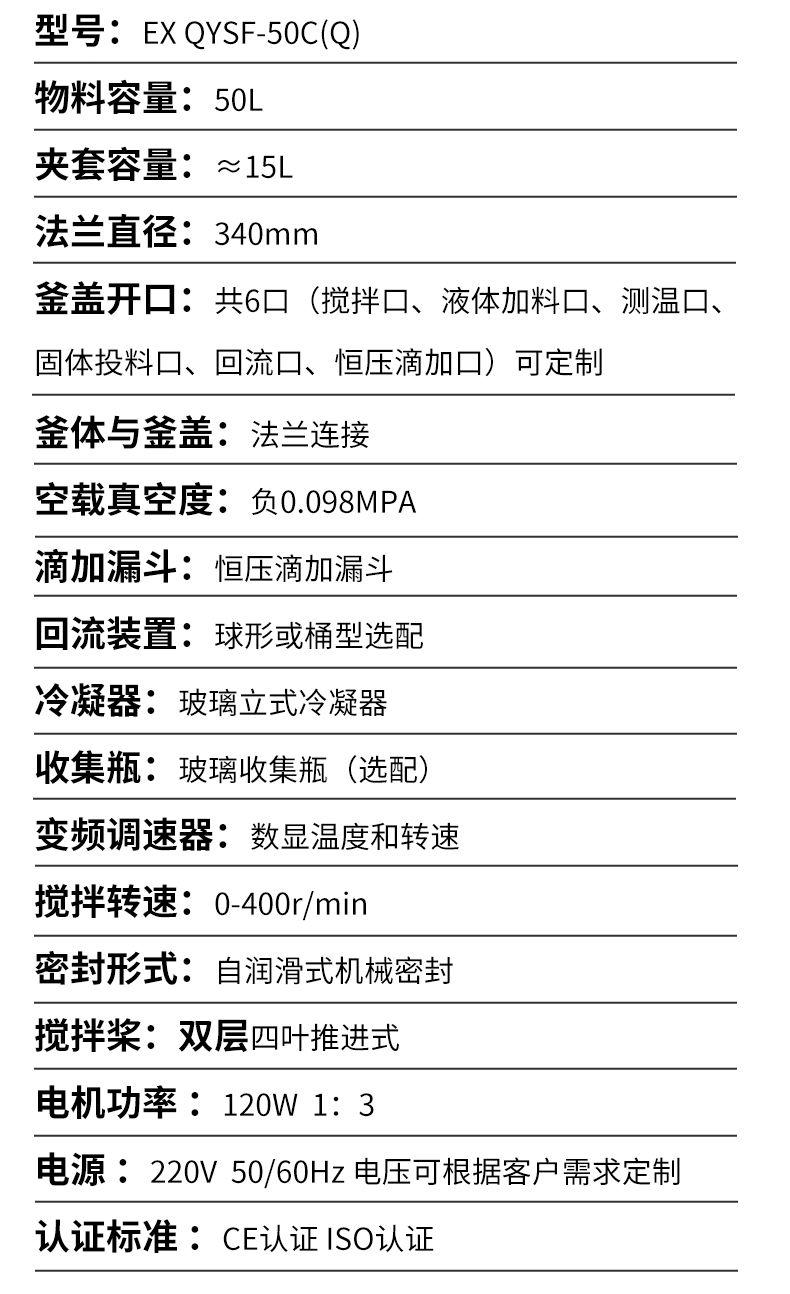 | 釜盖开口 | 共6口(搅拌口、液体加料口、测温口、固体投料口、回流口、恒压滴加口)可定制 | |||||
