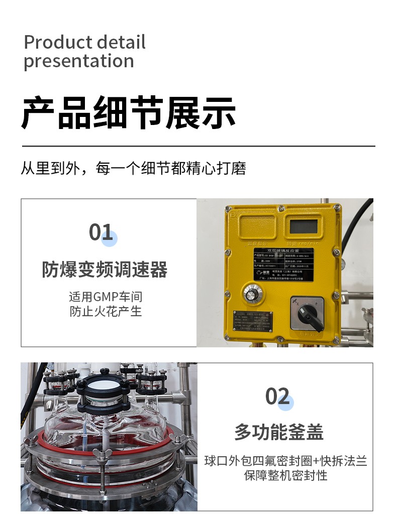 中小试实验室设备 双层玻璃反应釜 100ML~200L、可选 PLC 控制、自动进出料、配套控温、真空设备等。
