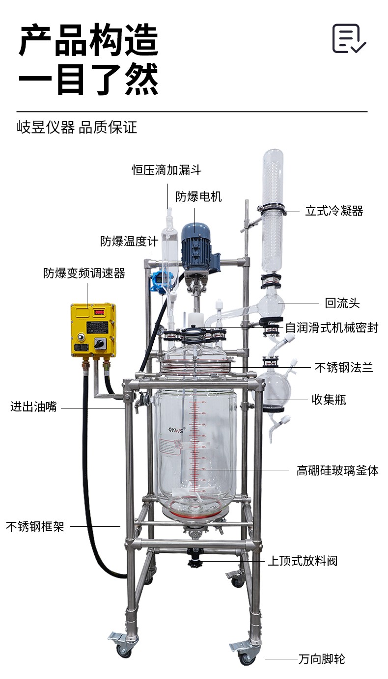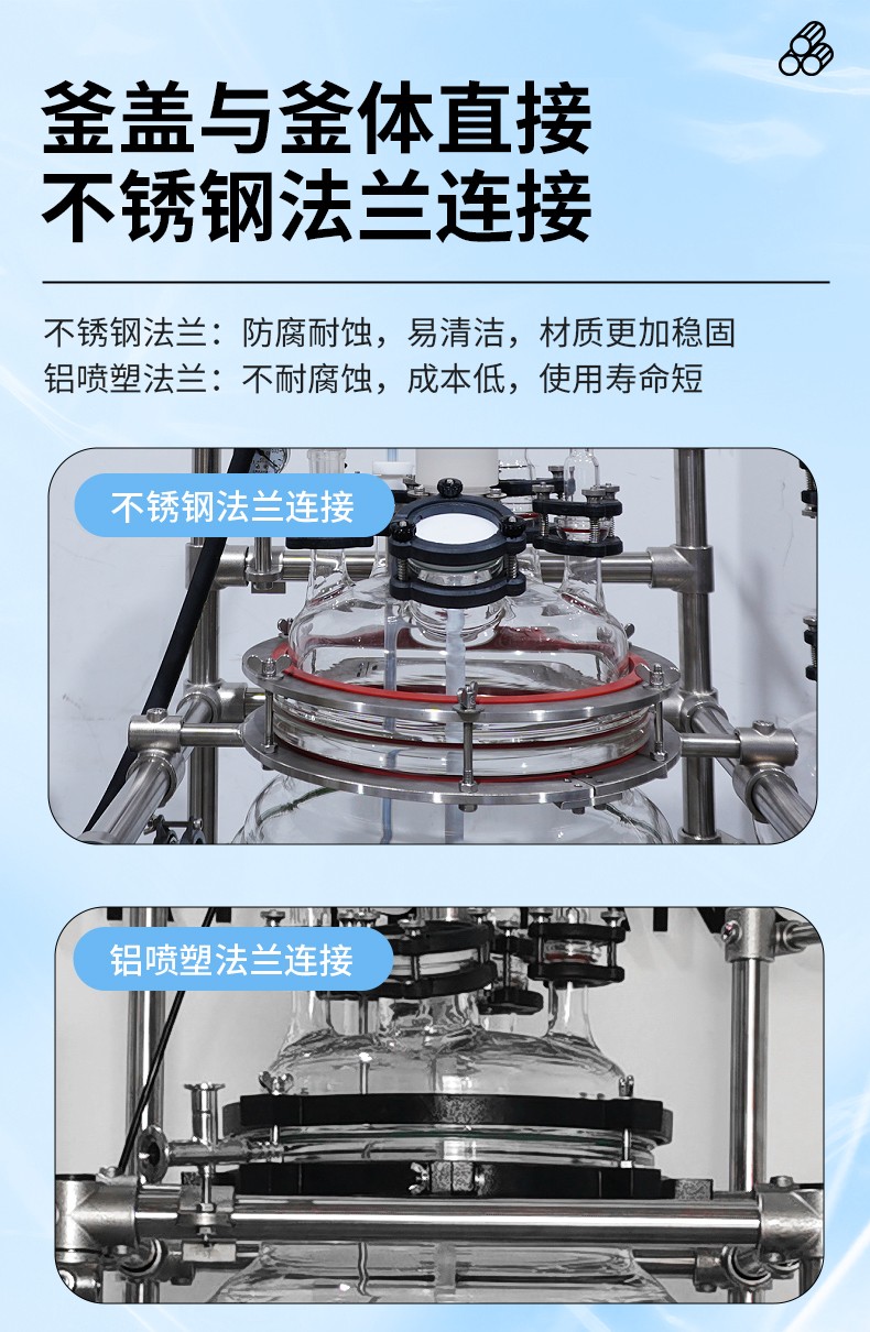 | 釜盖开口 | 共6口(搅拌口、液体加料口、测温口、固体投料口、回流口、恒压滴加口)可定制 | |||||
