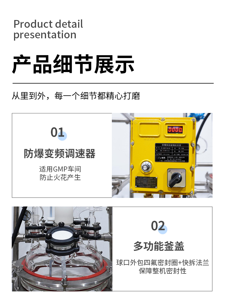 中小试实验室设备 双层玻璃反应釜 100ML~200L、可选 PLC 控制、自动进出料、配套控温、真空设备等。