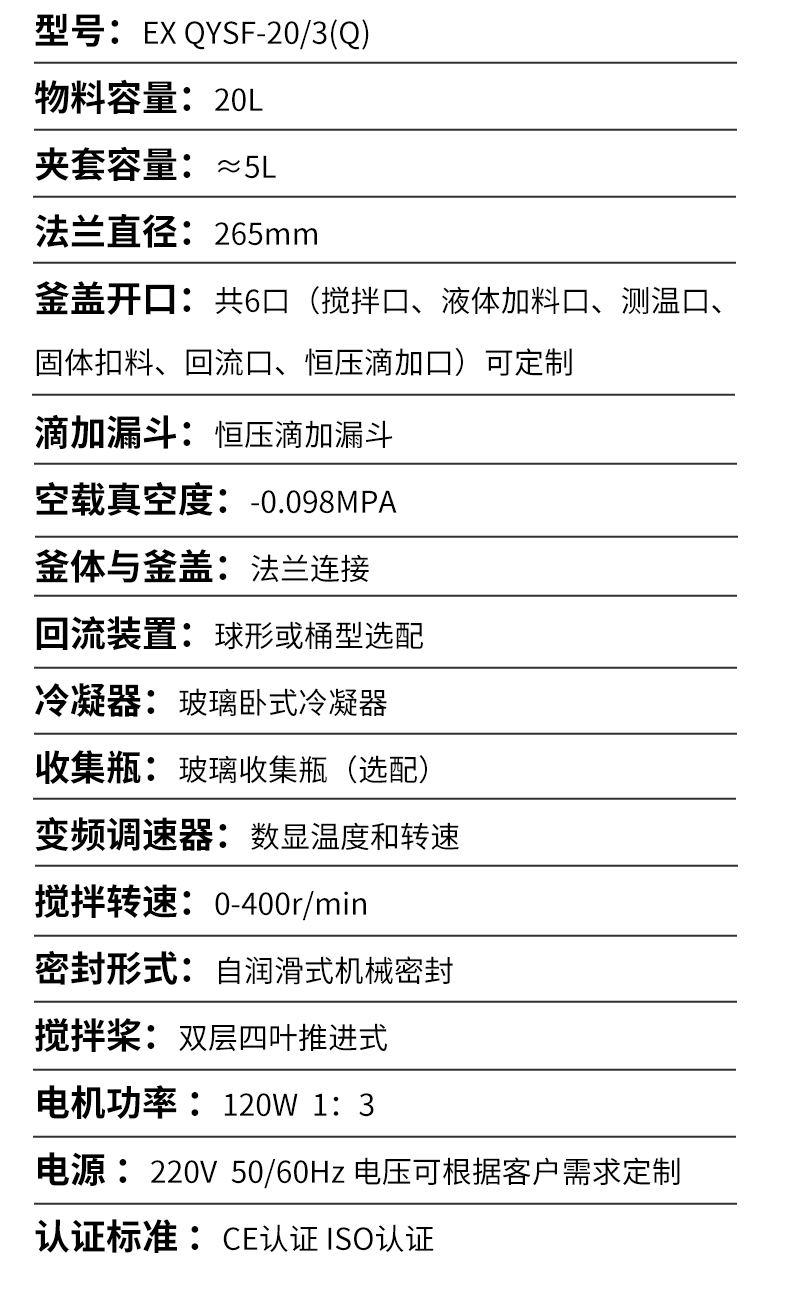 | 夹套容量 Jacketed capacity(mL) | ≈2L | ≈5L | ≈8L | ≈15L | ≈20L | ≈20L | ≈40L | ≈45L |