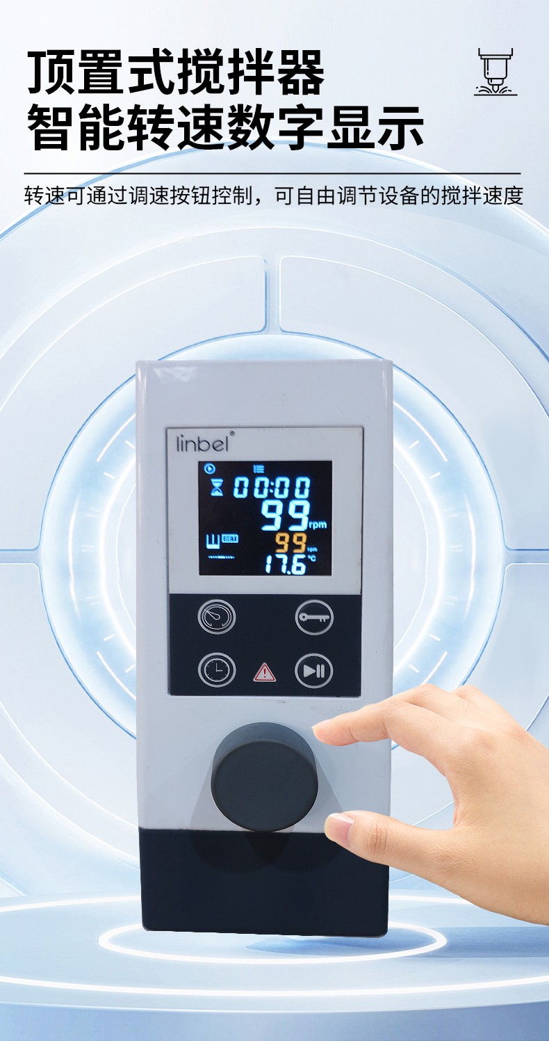 转速可通过调速按钮控制,可自由调节设备的搅拌速度