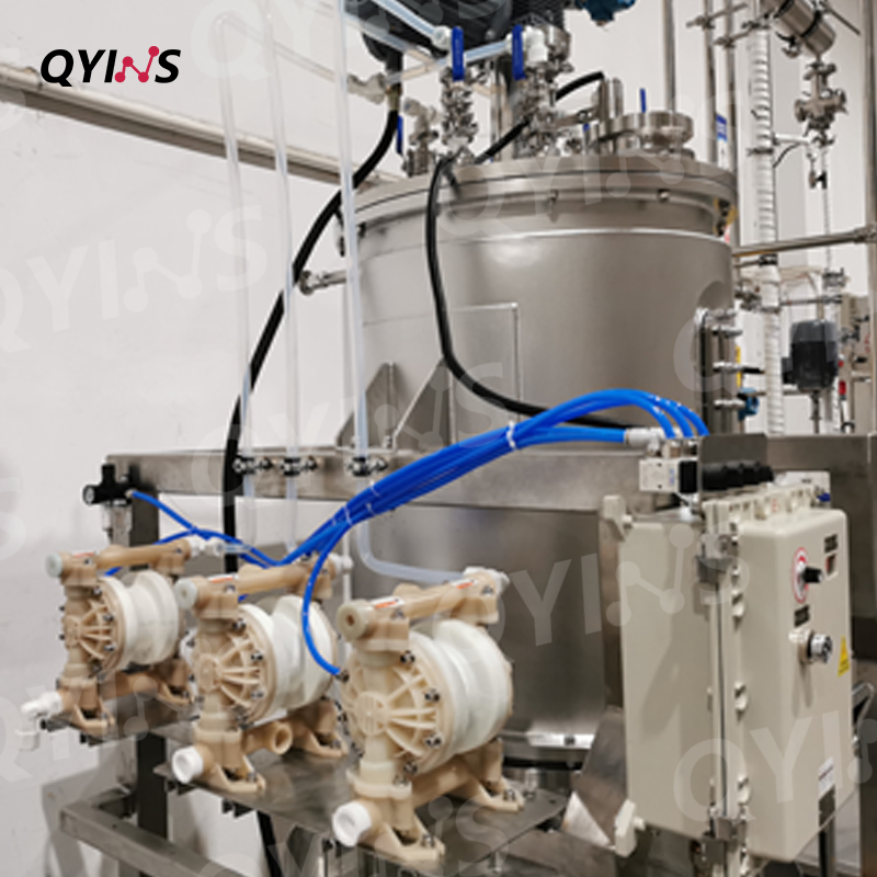 气动隔膜泵实现半自动进出料,有效减少人工操作,大大提高工作效率。