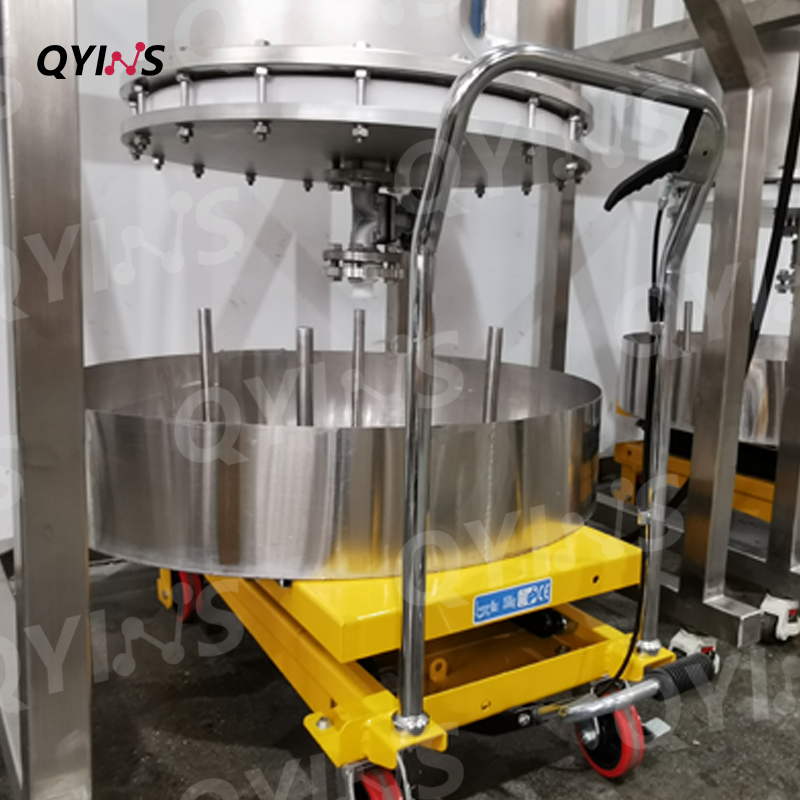 可移动升降接料小车+不锈钢托盘,辅助使用人员快速安装或拆卸过滤装置,便于收集固状粉状物料。