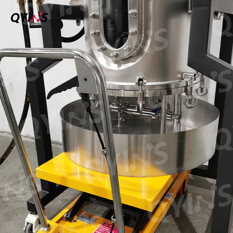 可移动升降接料小车+不锈钢托盘,辅助使用人员快速安装或拆卸过滤装置,便于收集固状粉状物料。