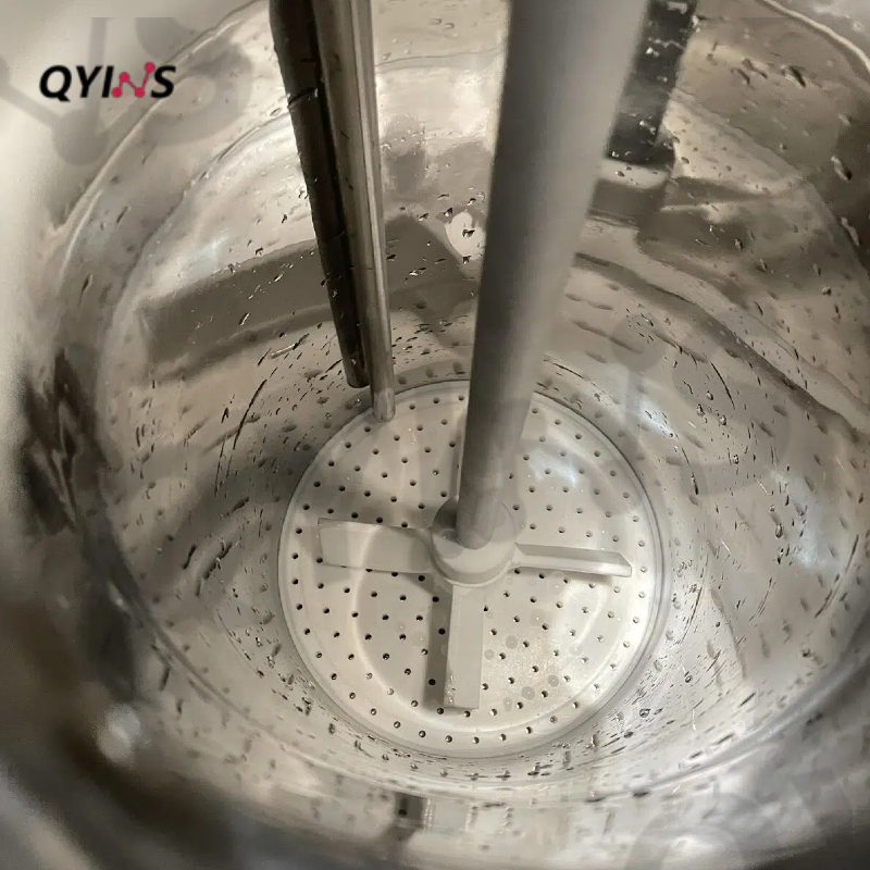放料采用三通阀门,除了液体的放料,还可以通氮气真空鼓泡(可以排除釜内氧气进行无氧反应保护物料),过滤装置内的导流槽可以作为气体均匀分布槽,使滤板下的气体均匀上升。