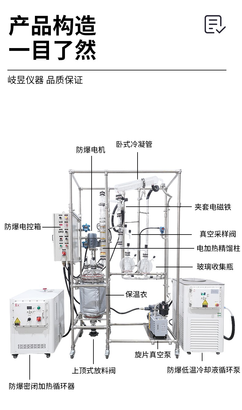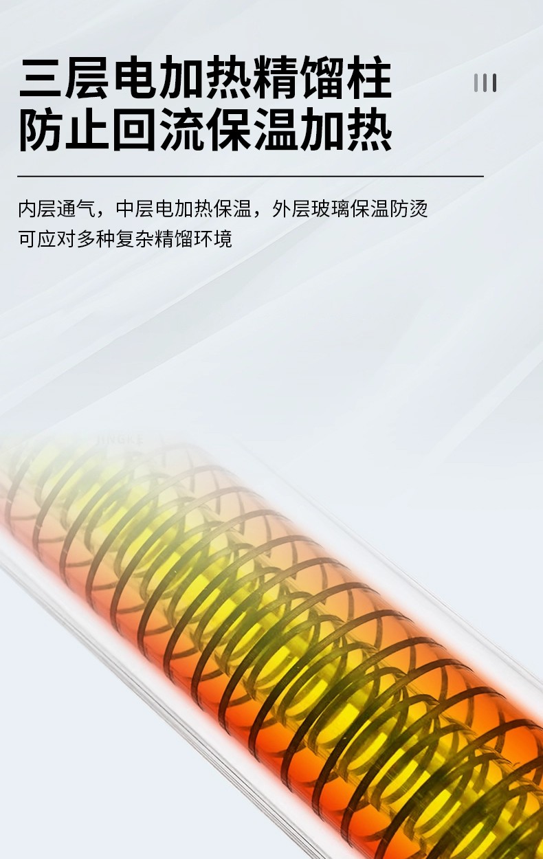 防止回流/保温加热,精馏塔拌有电加热系统双层加热、温度要控减少塔内温度向外扩散、并持续为塔内液体补充热量。