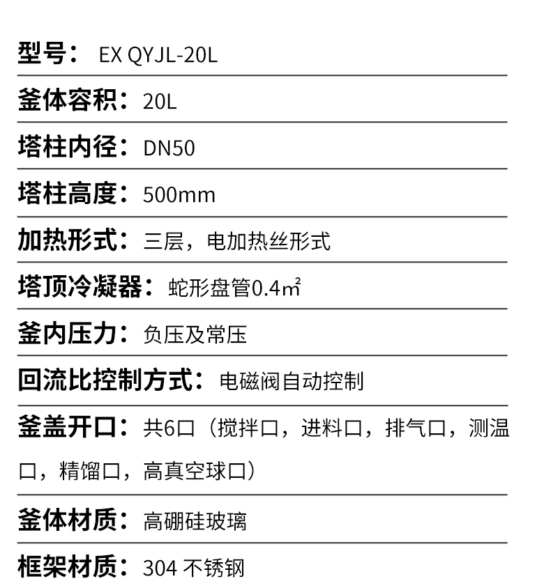 | 型号 | QYJL-1L | QYJL-2L | QYJL-5L | QYJL-10L | QYJL-20L | QYJL-50L | QYJL-100L |