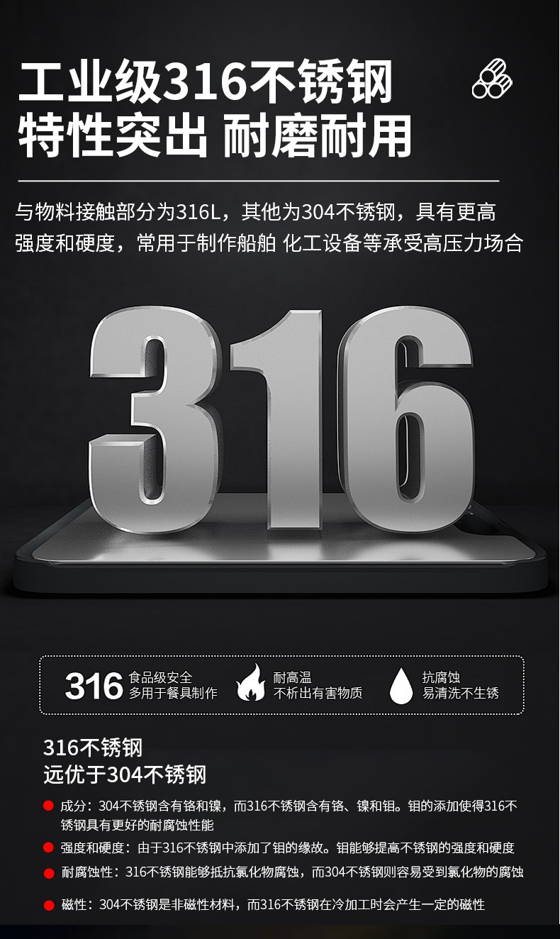 | 不锈钢材料 Stainless steel material | 与物料接触316L(可选其它不锈钢或合金材质)316L material in contact with the material (other stainless steel or alloy materials are optional) | ||||