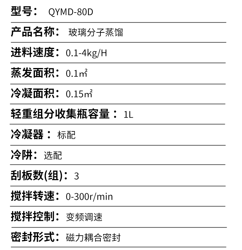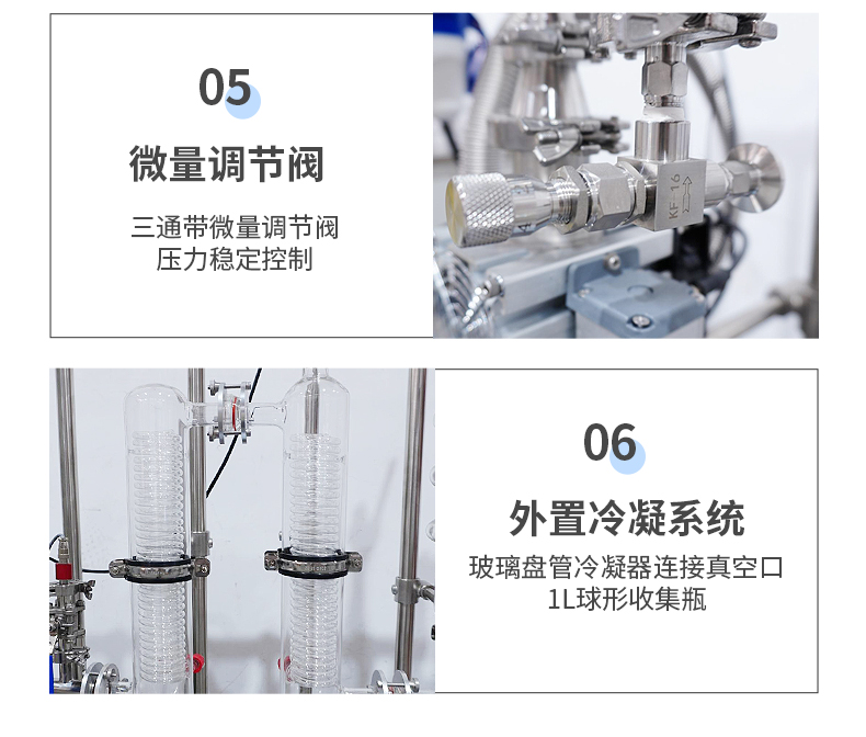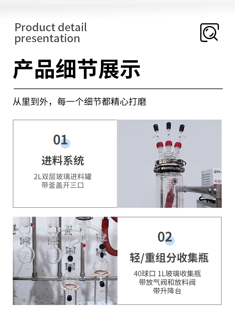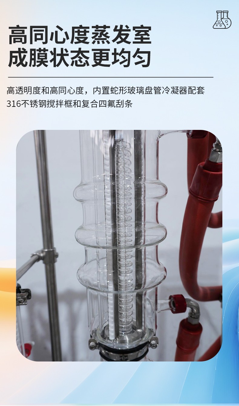 应用于:原料药、维生素的提纯;精油或者植物提取油的纯化处理:脱除硅油、树脂、聚合物中的单体:蒸馏单
