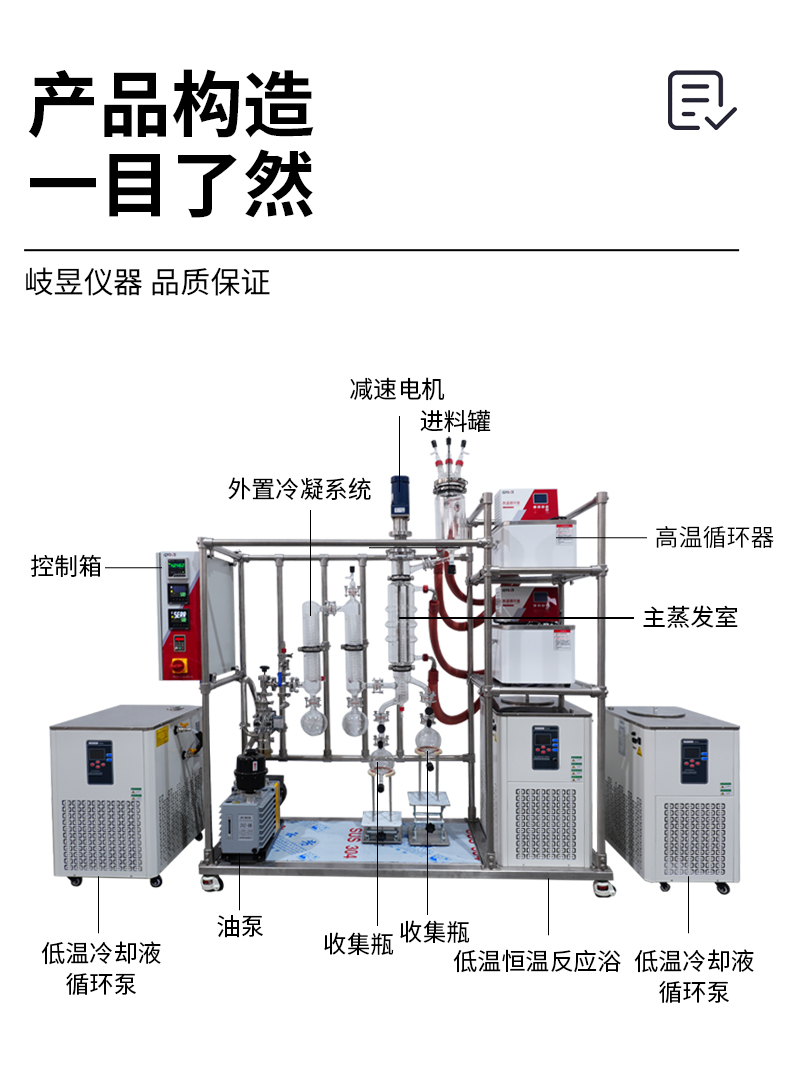 磁力传动系统使得整机密封得以实现,整套分子蒸馏系