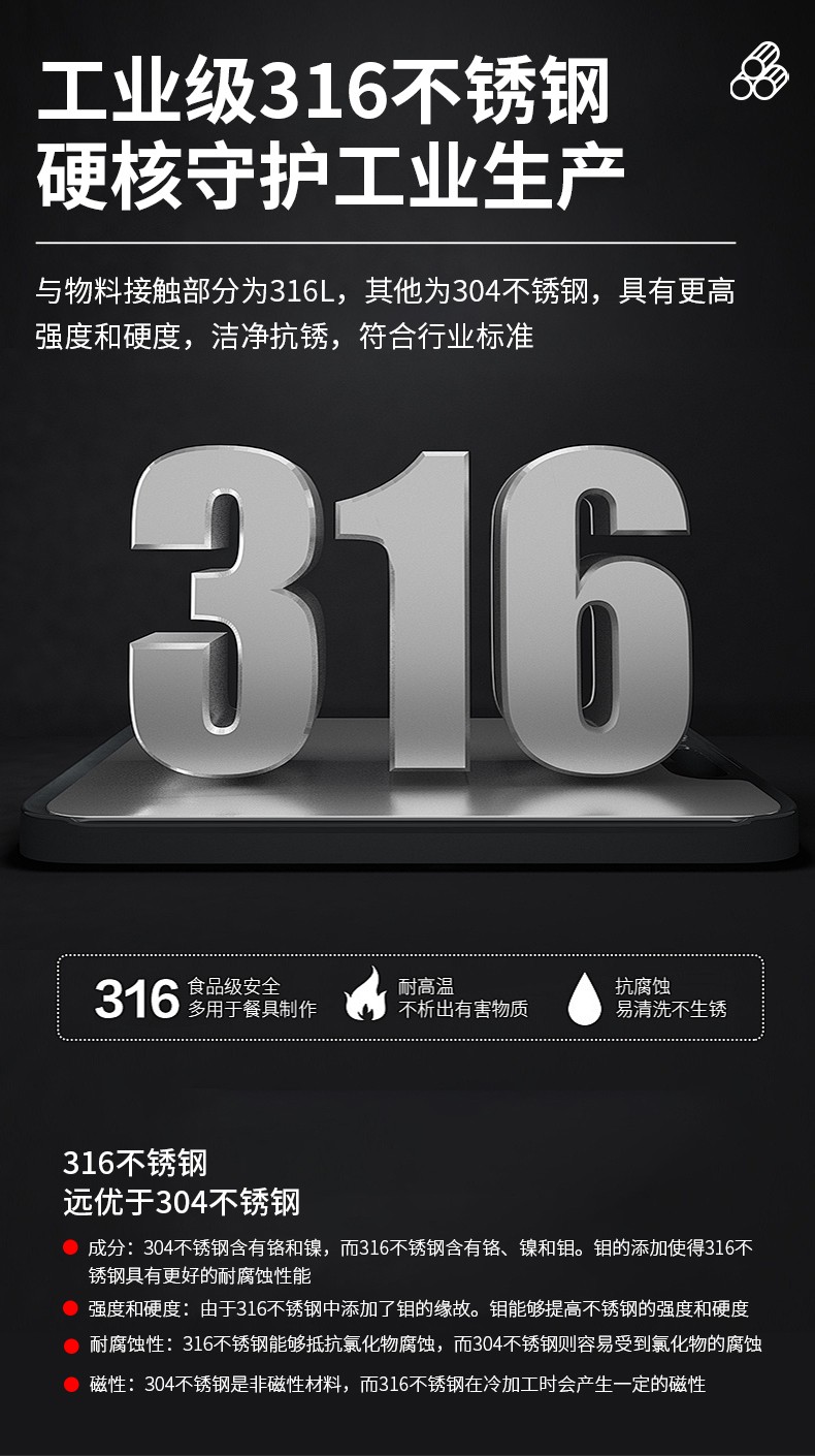 与物料接触部分为316L,其他为304不锈钢,具有更高