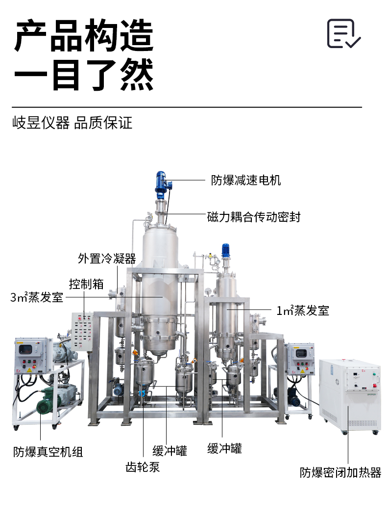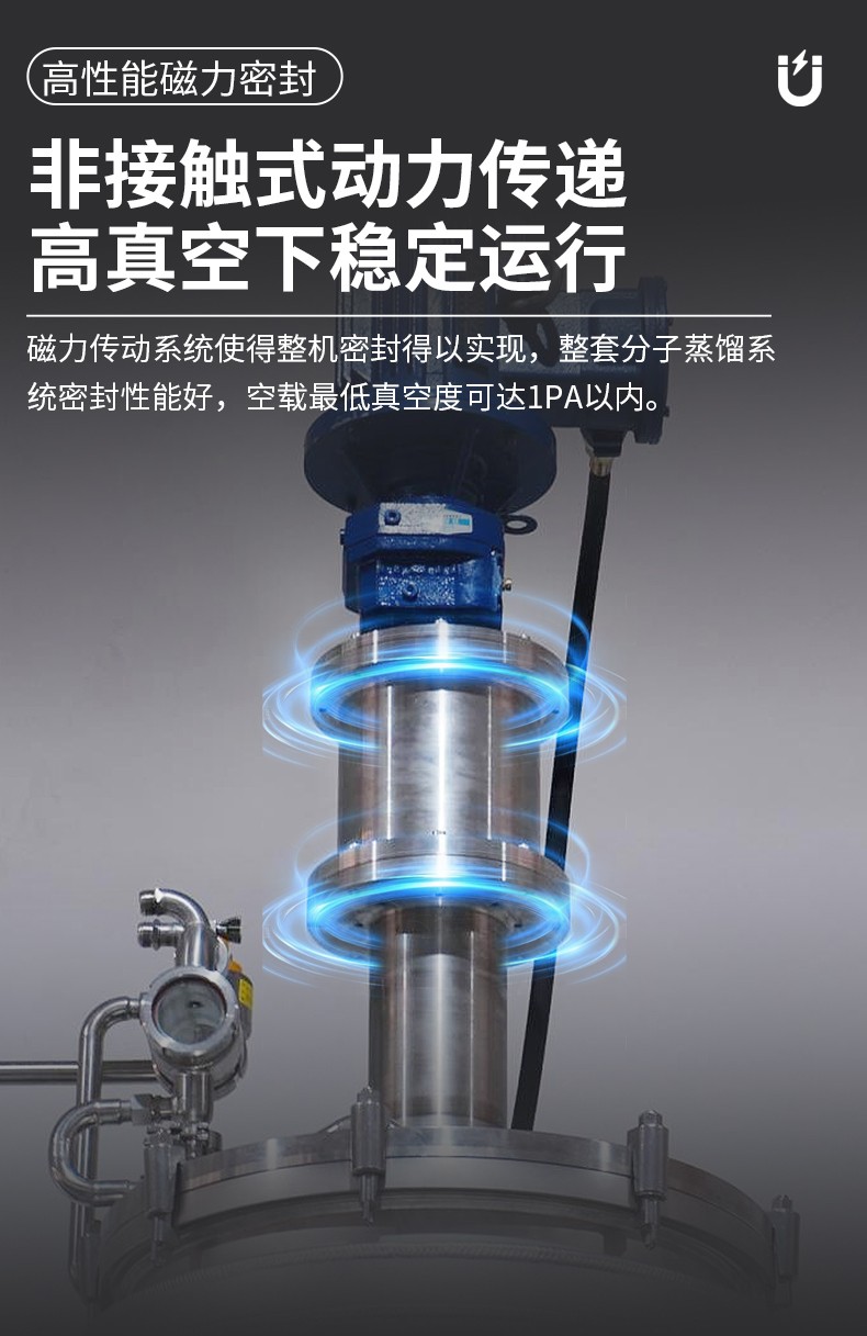 磁力传动系统使得整机密封得以实现,整套分子蒸馏系