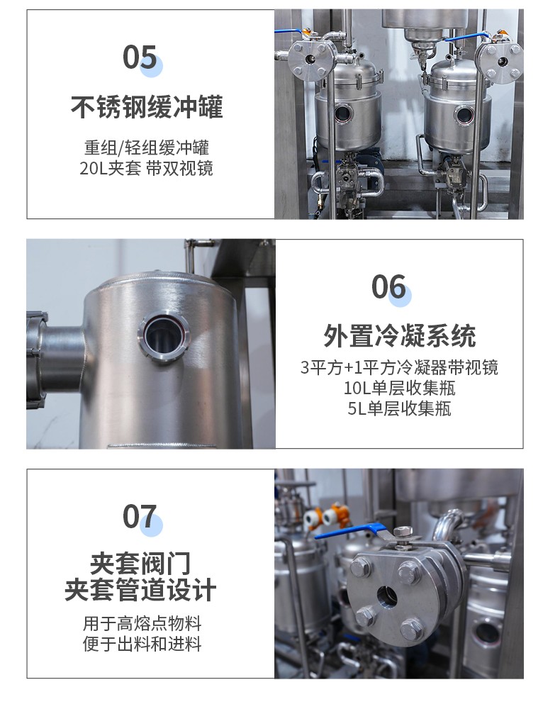 应用于:原料药、维生素的提纯;精油或者植物提取油的纯化处理:脱除硅油、树脂、聚合物中的单体:蒸馏单