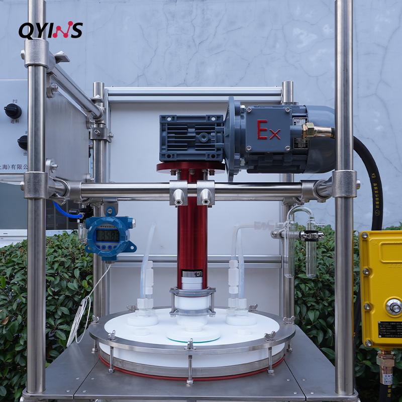 选用气动隔膜泵实现半自动进出料,提高生产效率,减少人工操作的时间和精力高。并且气动隔膜泵不使用电力作为动力源,特别适用于易燃易爆的环境中。