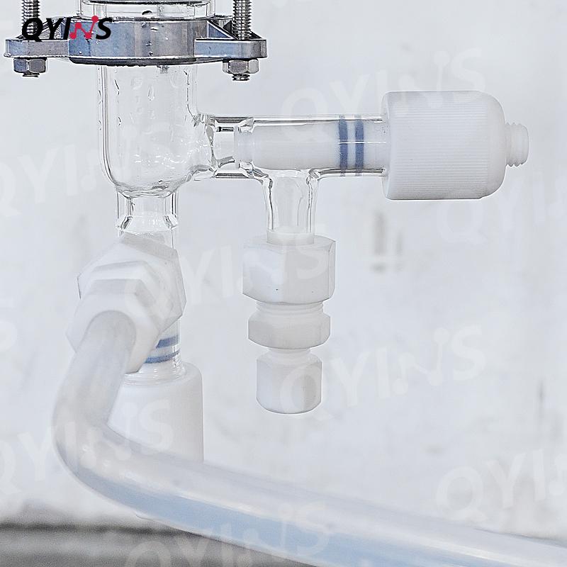 2.过滤装置采用四氟材质,内设有液体导流槽。筛板(四氟、不锈钢、钛材,各种规格滤布滤膜可选)压嵌入四氟过滤装置内,丝环旋拧固定,拆卸更换便捷。