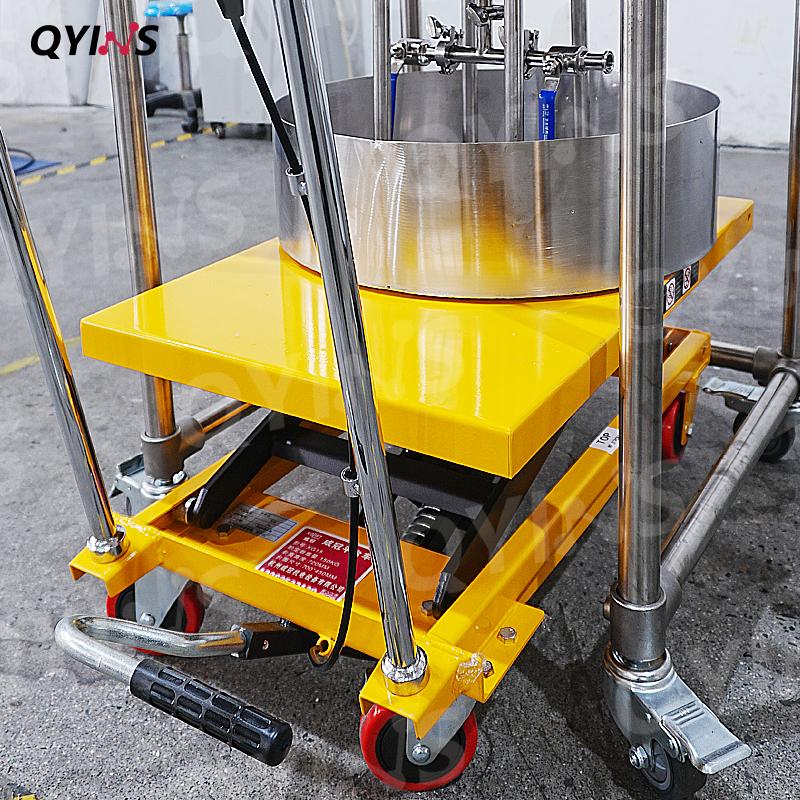 2、可移动液压升降小车+不锈钢托盘,辅助使用人员快速安装或拆卸过滤装置,便于收集固状粉状物料。