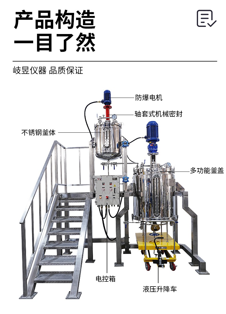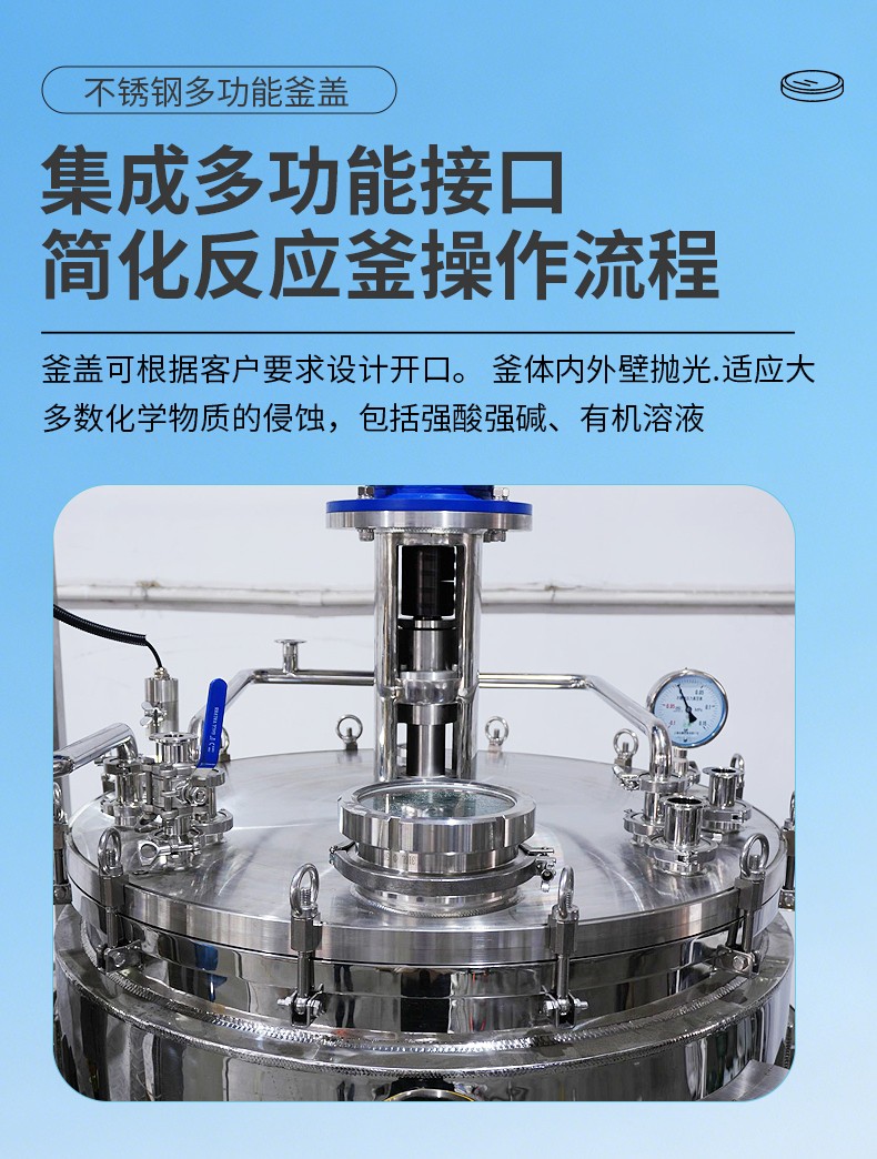 釜盖可根据客户要求设计开口。 釜体内外壁抛光.适应大