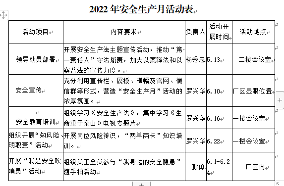 5月13日,公司召开安全生产月专题会议,总经理杨秀忠亲自安排部署公司“安全生产月”活目标方向、时间节点,对活动的方案策划、教育培训、疫情防控、成果转化等方面作出了具体的要求。