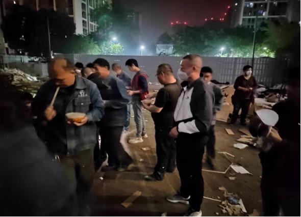 在项目交付前夕,公司总经理杨秀忠亲自到工地,与现场安装工人同吃同劳动,暖心聚力鼓干劲。