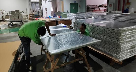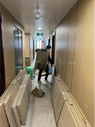 天泰荣观在接到一个月内完成西彭人才公寓改造升级项目两栋楼约25000平方米护墙板和多户型共计960套室内家具生产及安装的紧急任务后,自9月27日起,公司采取“白加黑”、“穿插式”作业,厂内工人及设备24小时不间断工作,在保障生产及施工安全和质量的同时,全体荣观人上下一心,加班加点,昼夜坚守,撸起袖子加油干,向节点目标全力冲刺。
