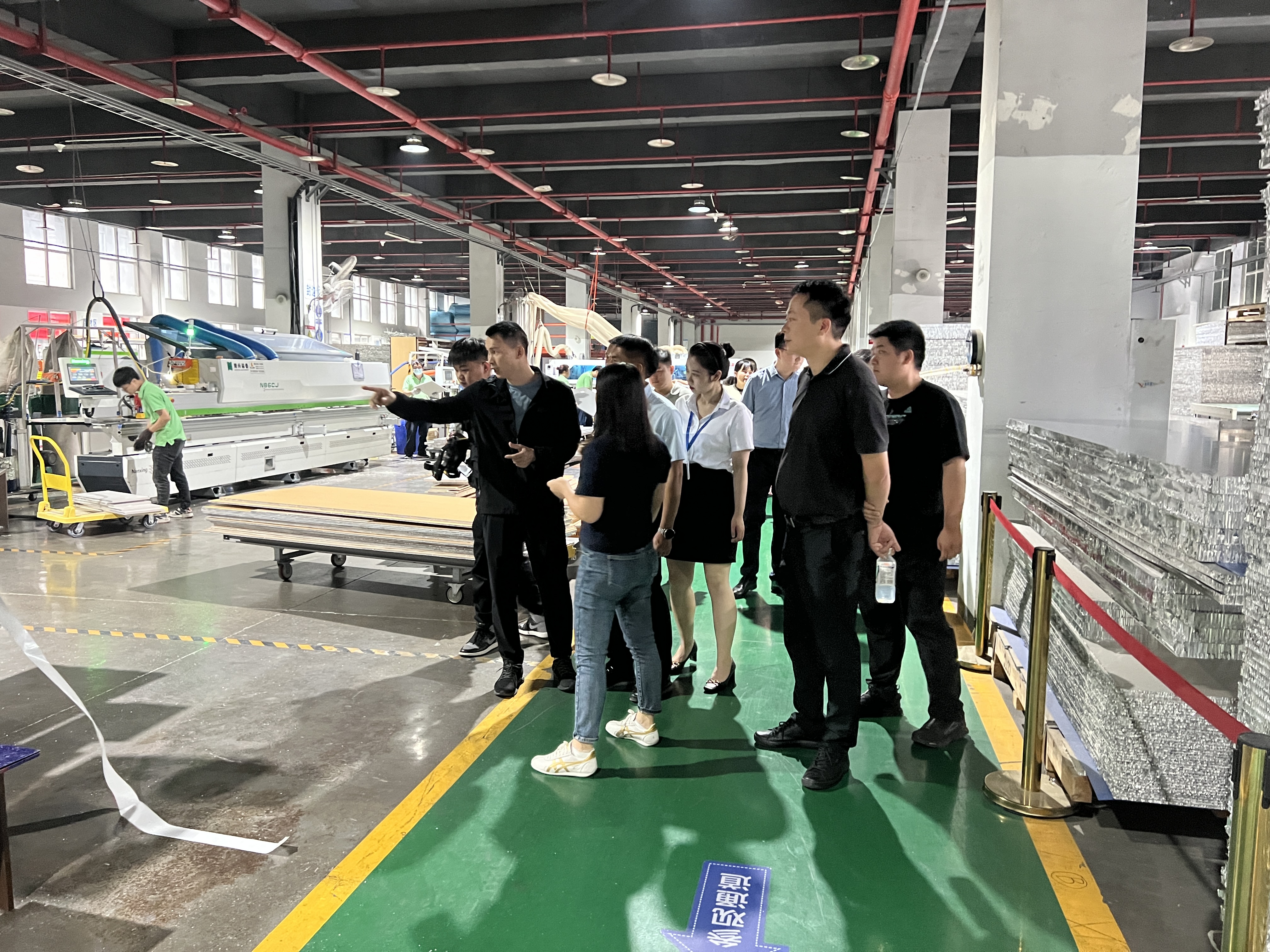 公司副总经理彭勇率领市场团队对百色市田林县考察团的到来表示热烈欢迎并热情接待。在公司展厅和生产线,考察团队认真察看了公司的市政、办公、家装、工装产品,并不时提问,对产品的性能、适用范围、生产工艺、生产周期等细节进行详细了解。