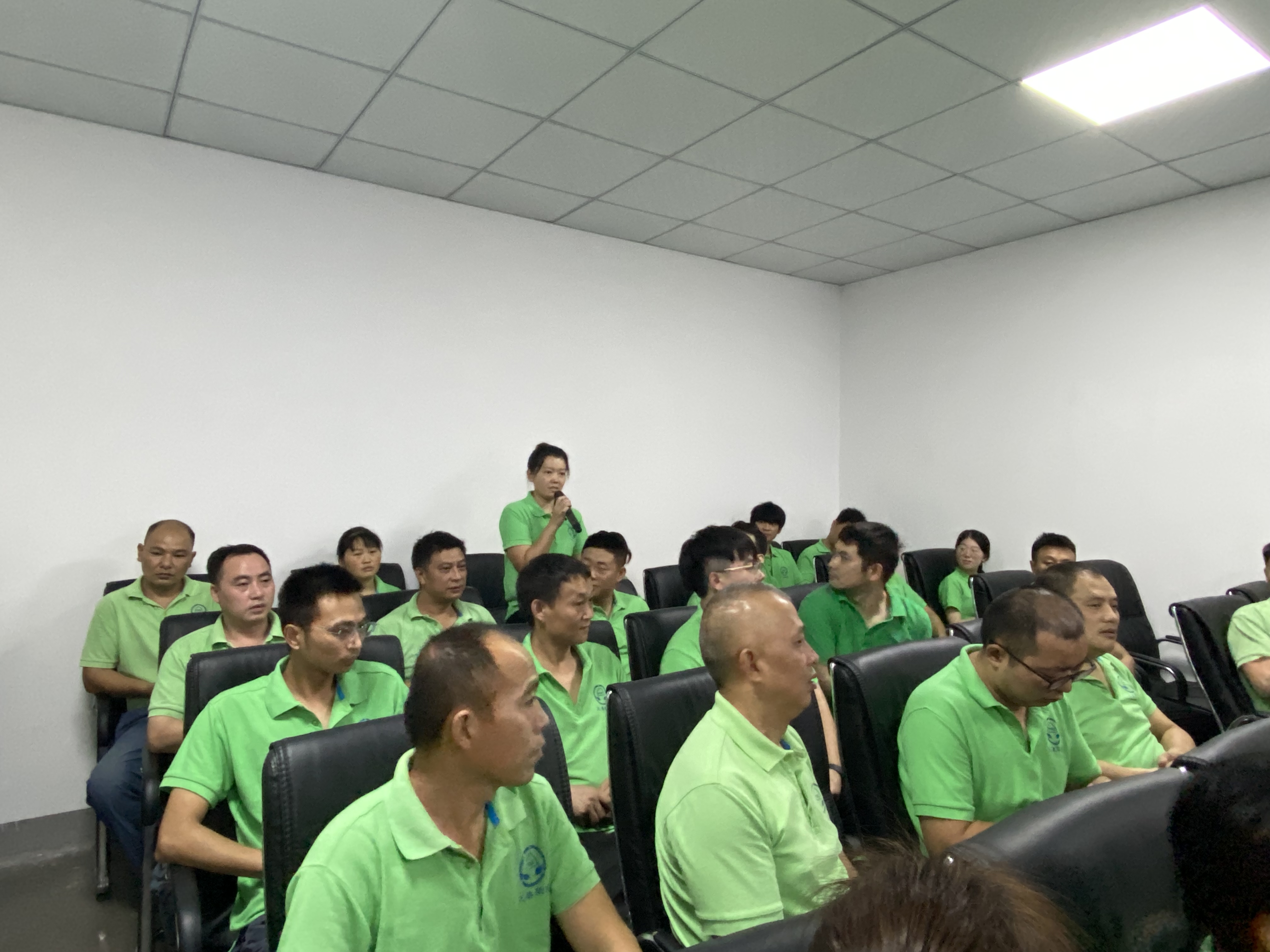 公司新增光伏铝边框生产线已全面筹建完成投产,目前生产正常,新员工在会上依次进行了自我介绍。
