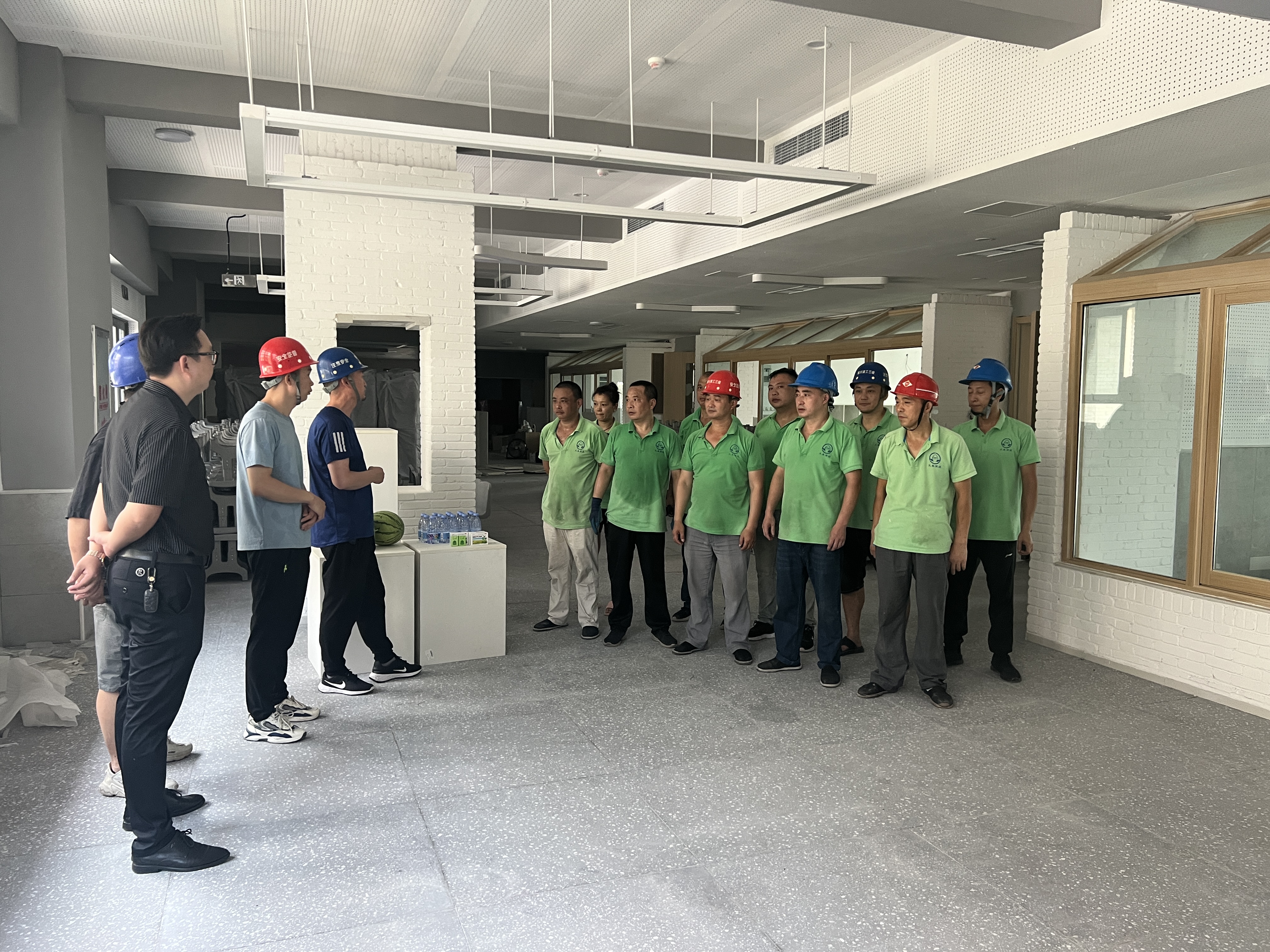 领导们时刻心系员工的安危,在百忙之中带来了解暑降温的西瓜、药品、矿泉水等。杨总还敦促大家高温天气下一定要做好防护、关注身体情况,有任何不适立即停下,牢记“安全第一” 的原则。